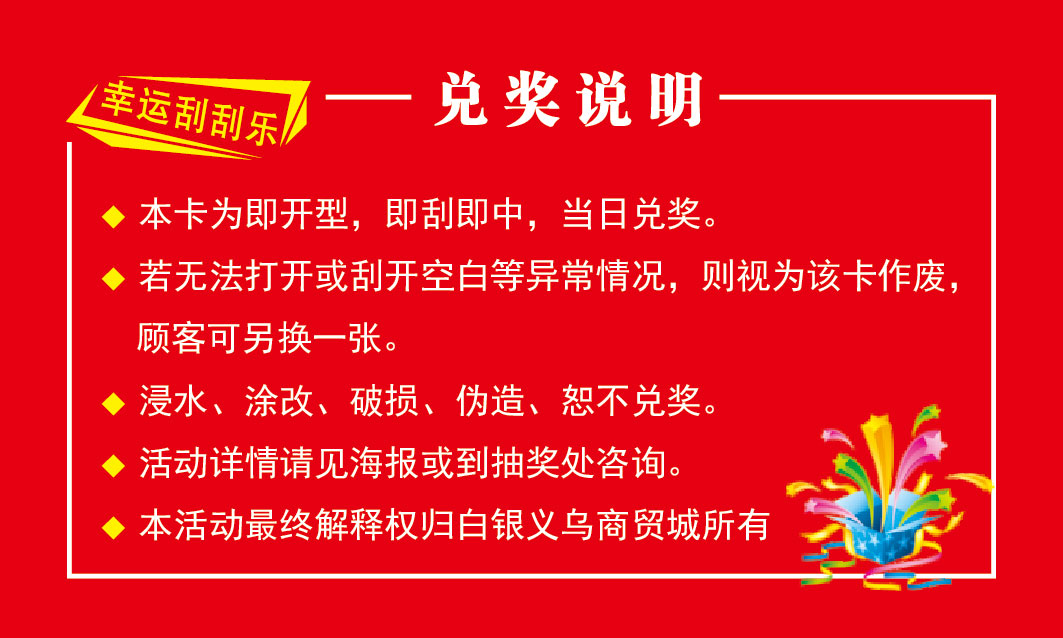 石家莊市中興印刷有限公司版權所有百度統計 冀ICP備09017295號-13站長統計 關鍵詞:刮刮卡 刮獎卡 不干膠刮刮卡 掃碼刮獎卡 數碼防偽標 條碼防偽標 二維碼防偽 連號門票 條碼門票 二維碼門票 景區門票 電信充值卡、積分卡、游戲卡 學習卡 監管碼 防竄貨標簽 產品信息碼標簽 一物一碼卡